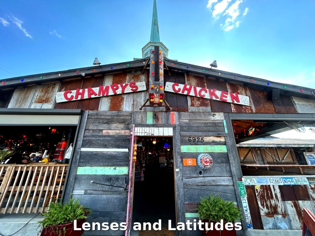 Stepping into Champy’s is like entering a vibrant Southern juke joint. The walls are adorned with thousands of dollar bills contributed by patrons, creating a unique and lively atmosphere. The eclectic decor, reminiscent of a dive-bar, adds to the charm, making it a family-friendly spot that’s both fun and cozy.